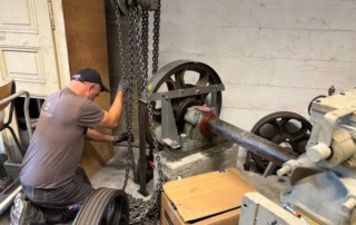 Notre mission : changer les câbles, la poulie de traction et les poulies de renvoi de cet équipement vieillissant, dans un lieu vivant et chargé d’histoire. Un défi technique de premier ordre.