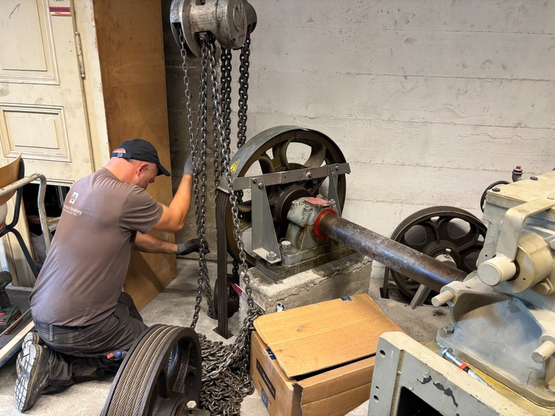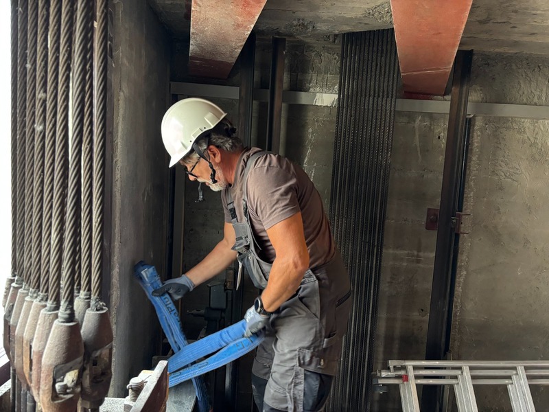 Notre mission : changer les câbles, la poulie de traction et les poulies de renvoi de cet équipement vieillissant, dans un lieu vivant et chargé d’histoire. Un défi technique de premier ordre.