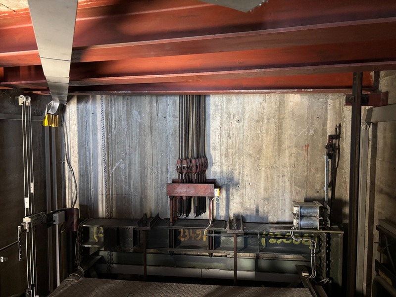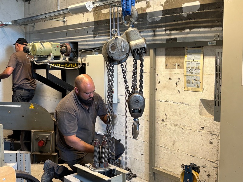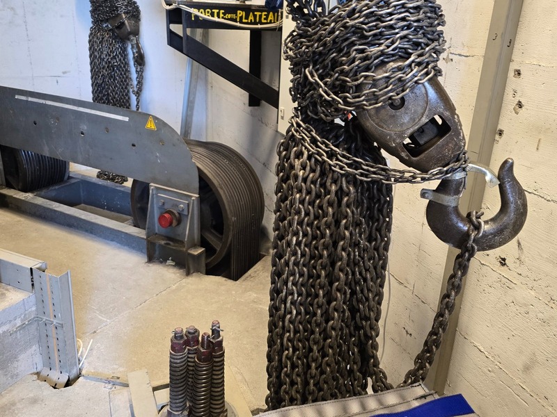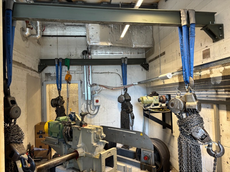 Avant même de parler de travaux, il faut imaginer l’installation. Le monte-décors du Grand Théâtre de Genève n’a rien d’ordinaire : 3 mètres de large, 8.80 mètres de long, 8.50 mètres de haut. Une cabine monumentale, conçue pour déplacer des décors entiers de scène d’opéra, datant de 1960.